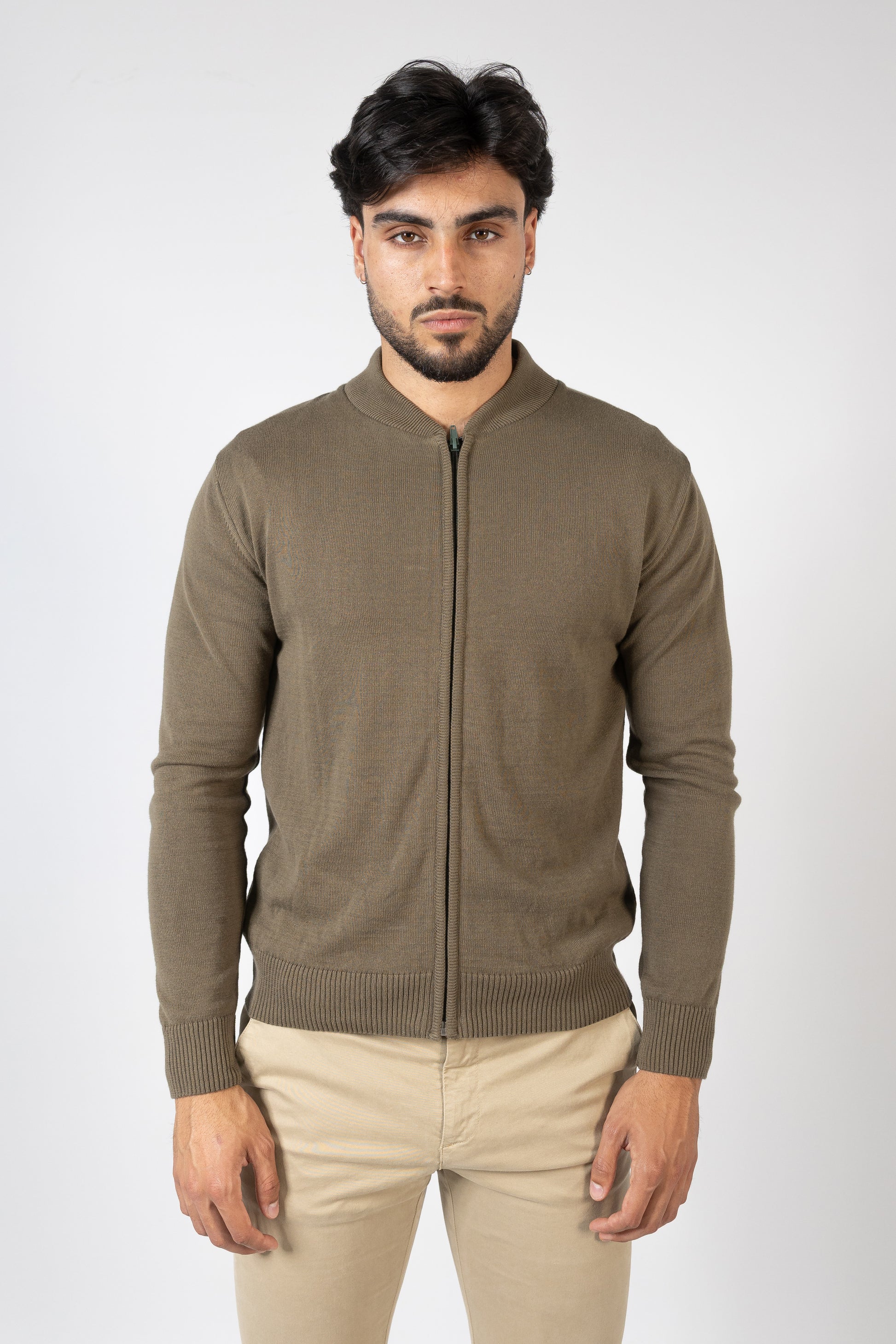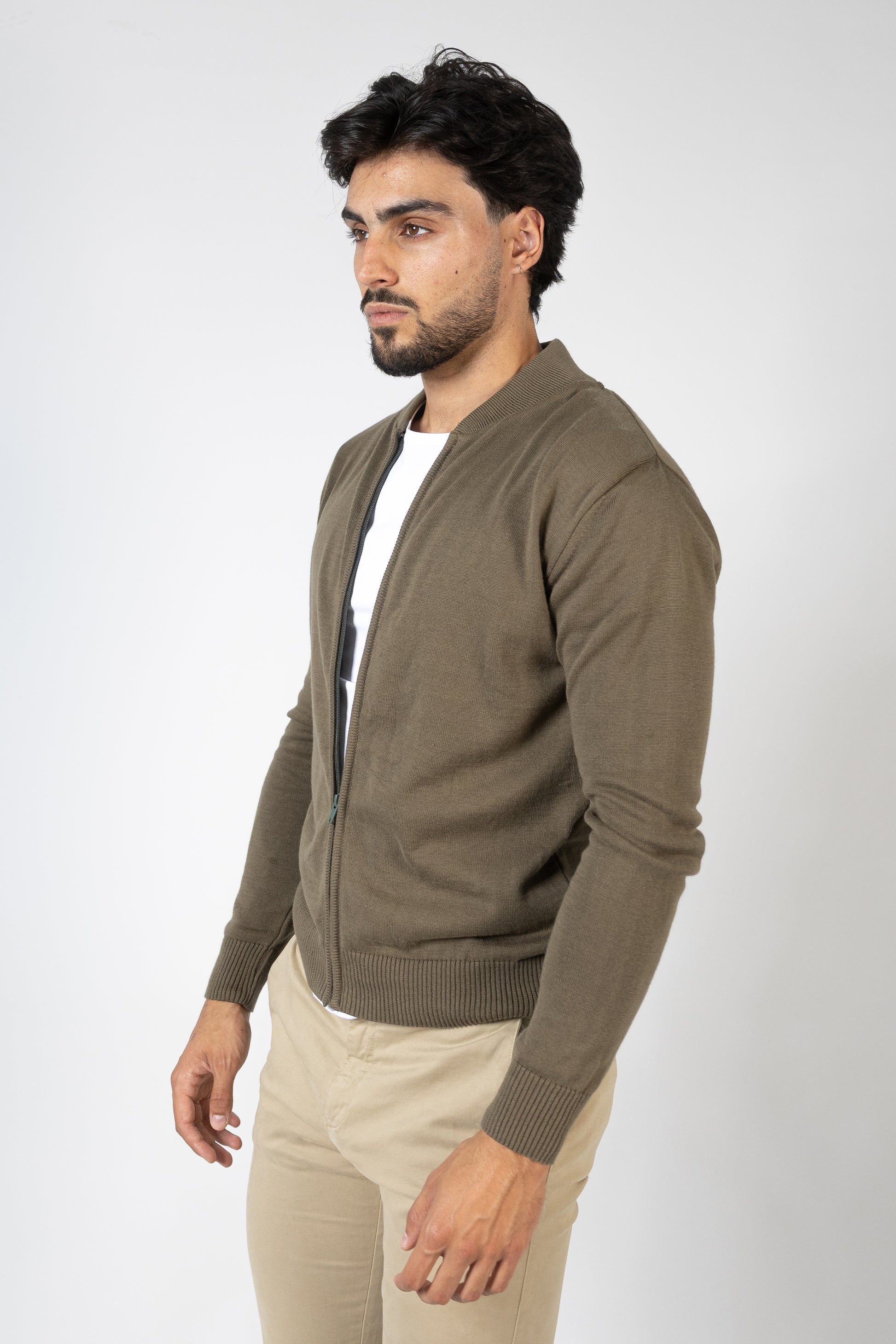 Quilted kispo with high collar and long sleeves finished with elastic cuffs. Side pockets. Front zip fastening with poppers.