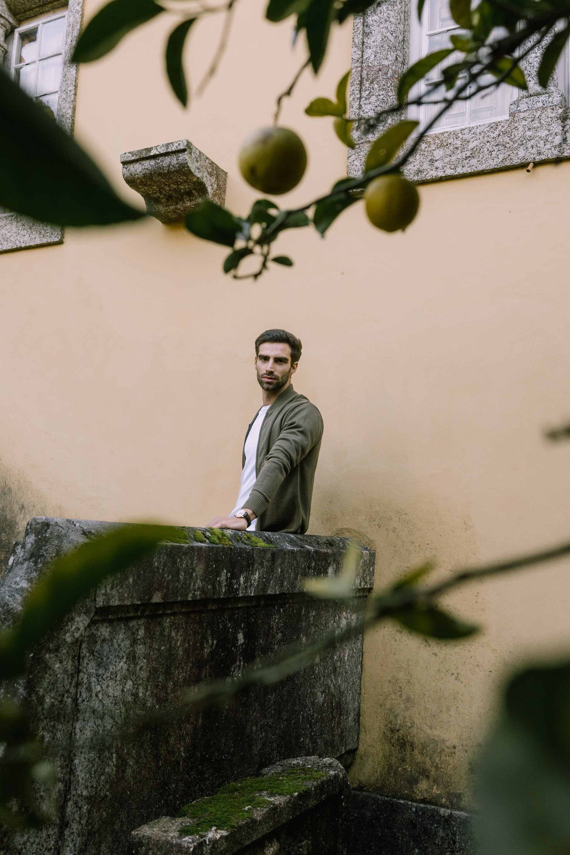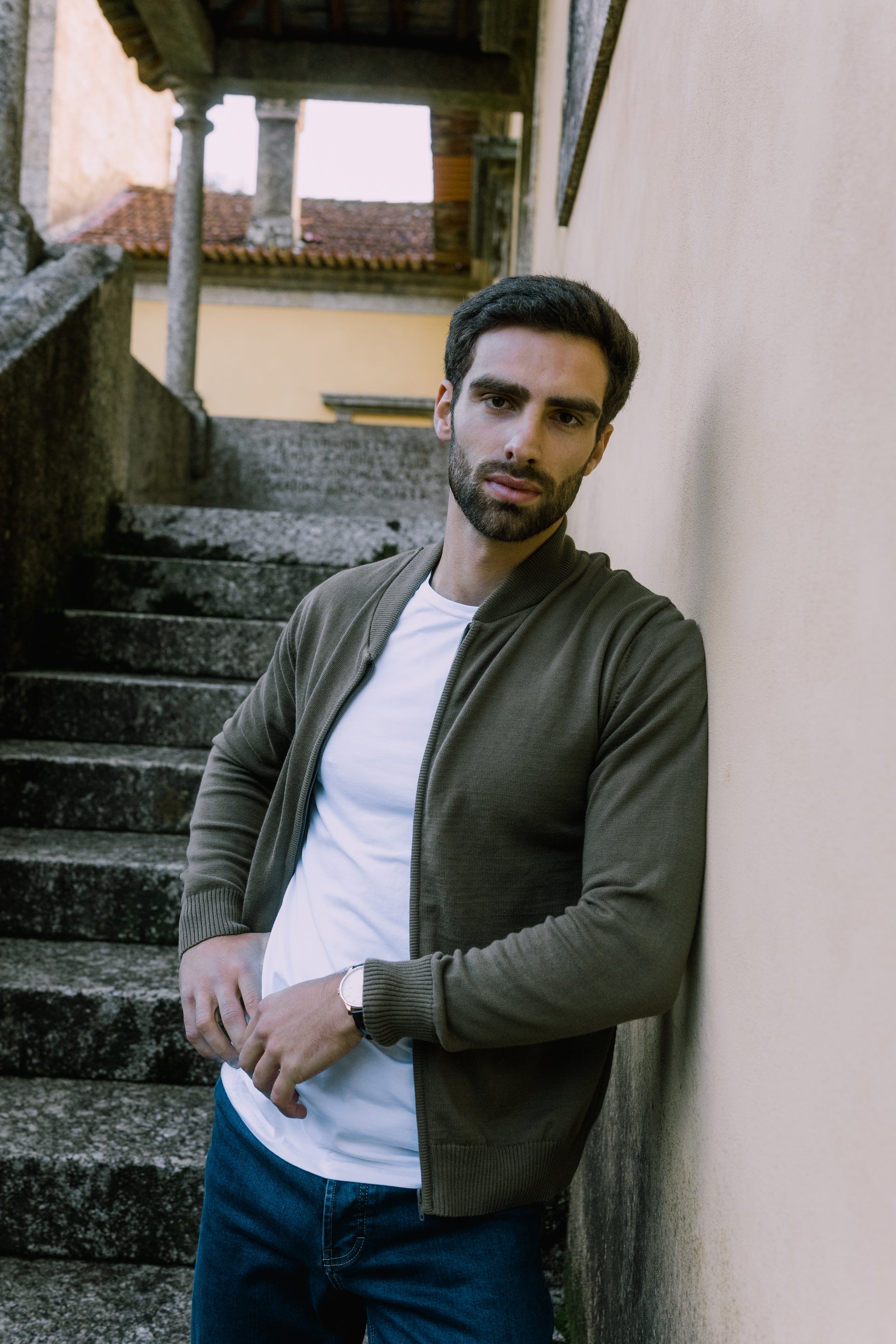 The model is 1.80m tall and wears size M.