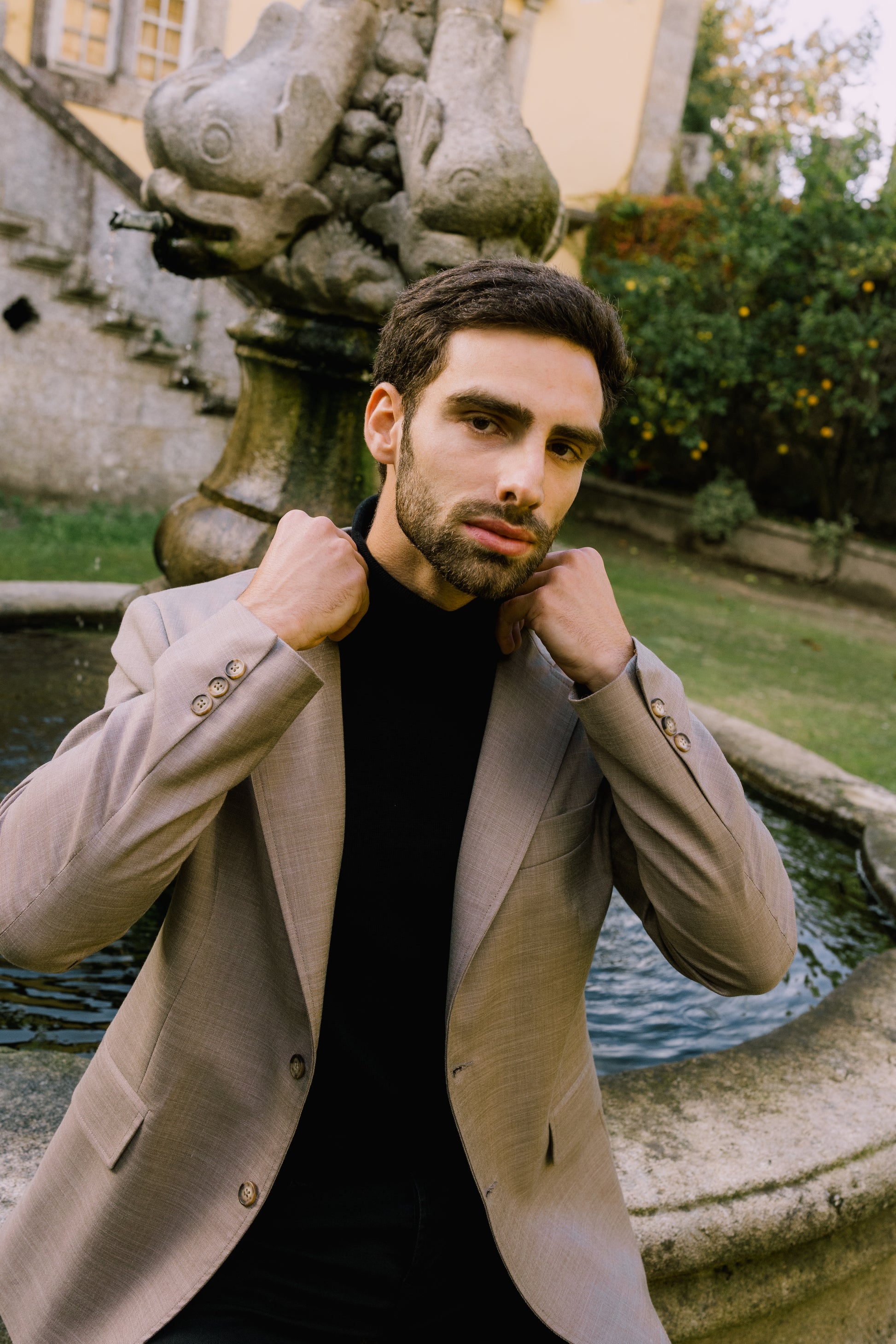 Blazer de gola com abas talhadas. Manga comprida acabada no punho com detalhe de botões. Bolsos com abertura debruada no peito e de aba na anca. Detalhe do bolso interior. Fecho frontal com botões.