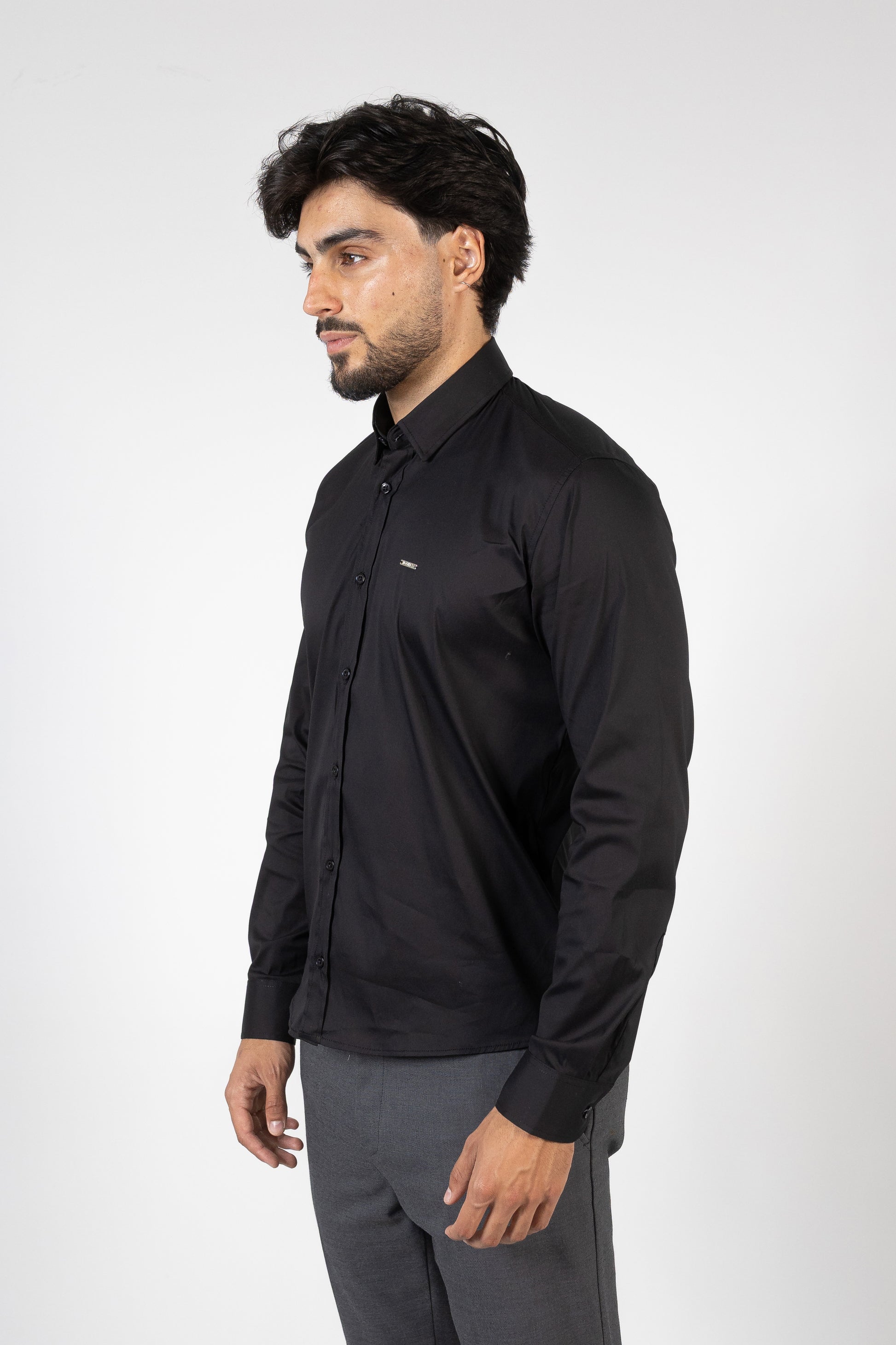 A camisa slim fit preta é uma peça indispensável para um visual elegante, moderno e versátil. Com corte ajustado ao corpo, realça a silhueta masculina sem perder o conforto. O design clássico com gola tradicional e botões frontais transmite sofisticação, adaptando-se tanto a ambientes formais como a ocasiões casuais.