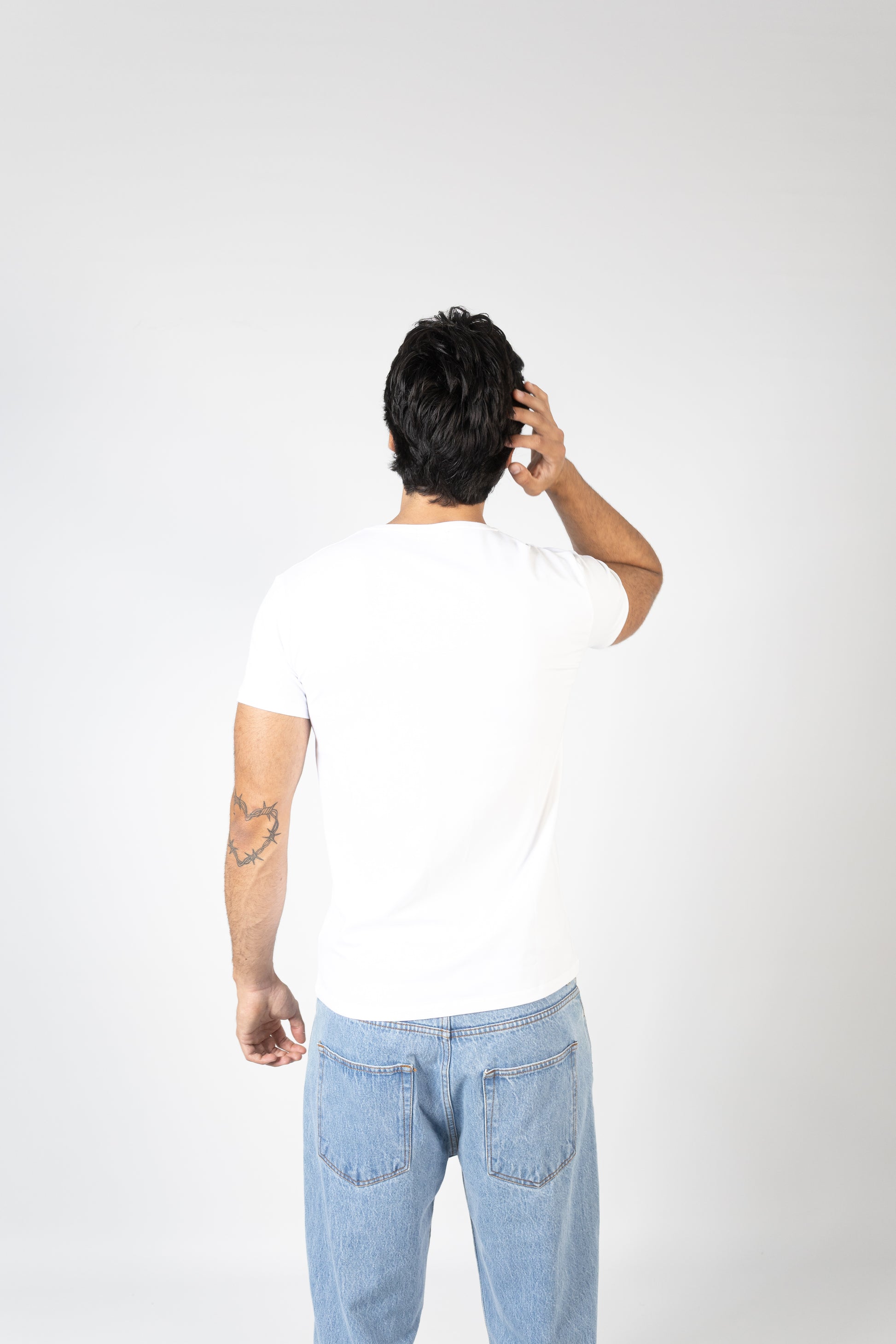 T-shirt masculina em cor branco, com corte regular e design minimalista. Confecionada em algodão macio, oferece conforto e respirabilidade para o uso diário.